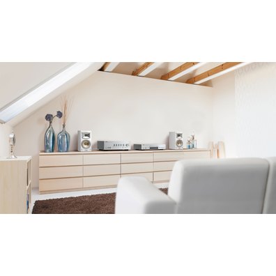 在這個高規格聲源的時代,我們期待小型書架音箱的未來不只是做到物有所值。采用全新兼容高分辨率的球頂高音單元,與兼容高分辨率的普通音箱相比(40 kHz),令人耳目一新。其核心在于確保廣闊、無音染的高音和低音,以及通過調諧使聲樂作品具有真實感,后者是容易讓聽者注意到質量差別的因素。