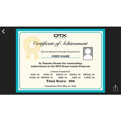 “挑戰模式”是DTX402 Touch上的一項新功能,可測試您的技能水平。如果能在零失誤的情況下演奏所有10首練習曲,即可獲得來自雅馬哈DTX電子鼓團隊的“鼓手證書”,并可通過社交媒體分享。